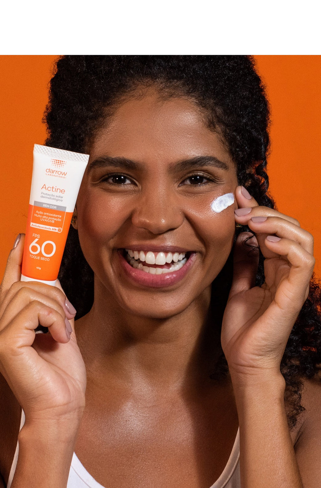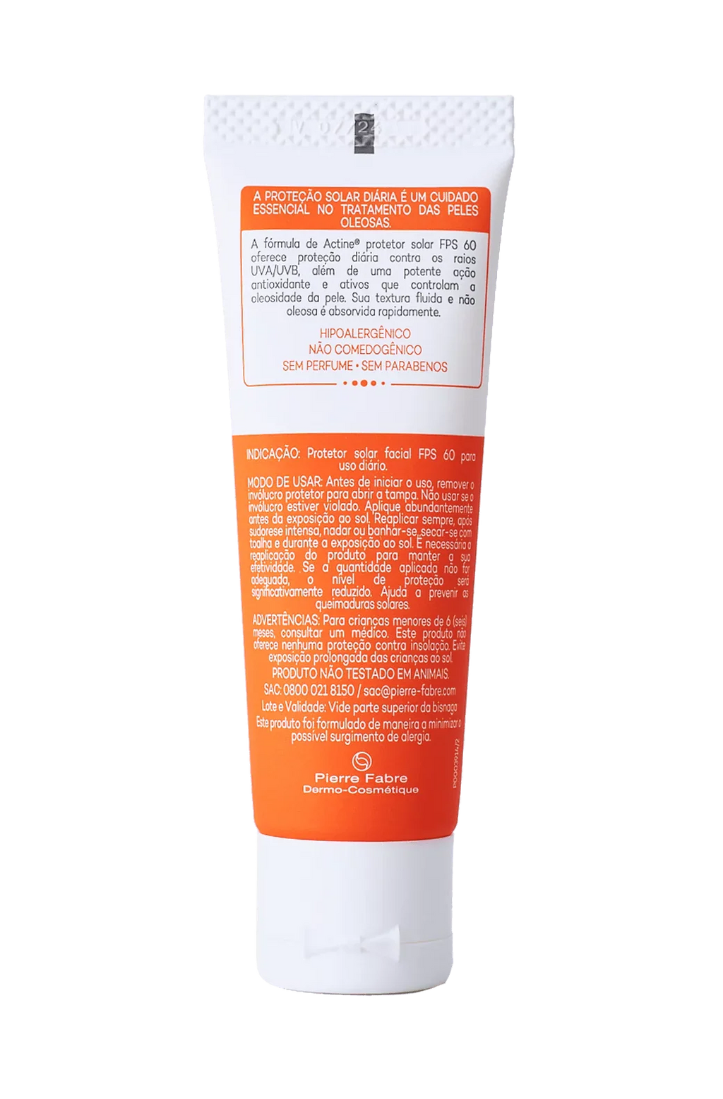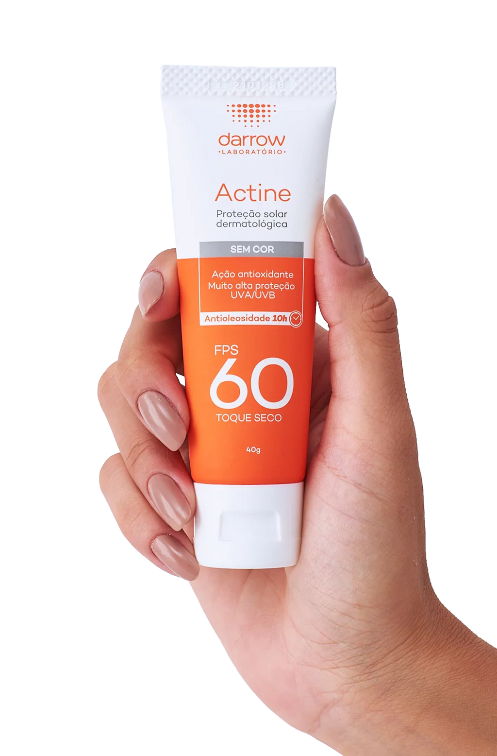 Actine Solar FPS 60 sem cor 40g possui toque seco de absorção imediata garantindo 10h de proteção antioleosidade: