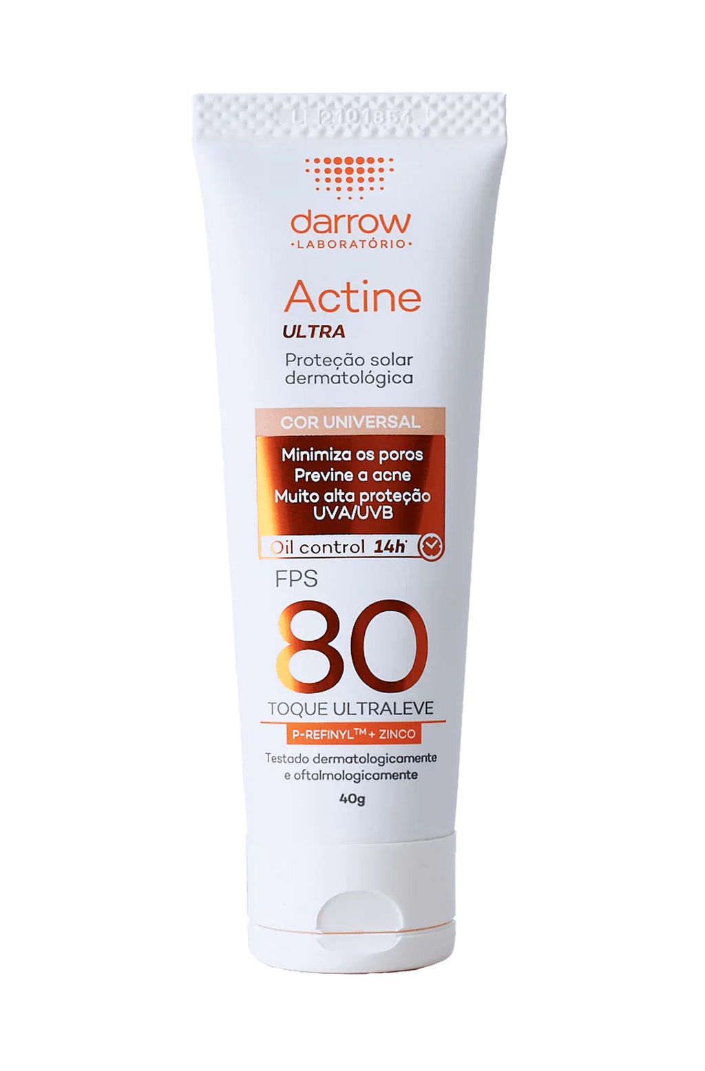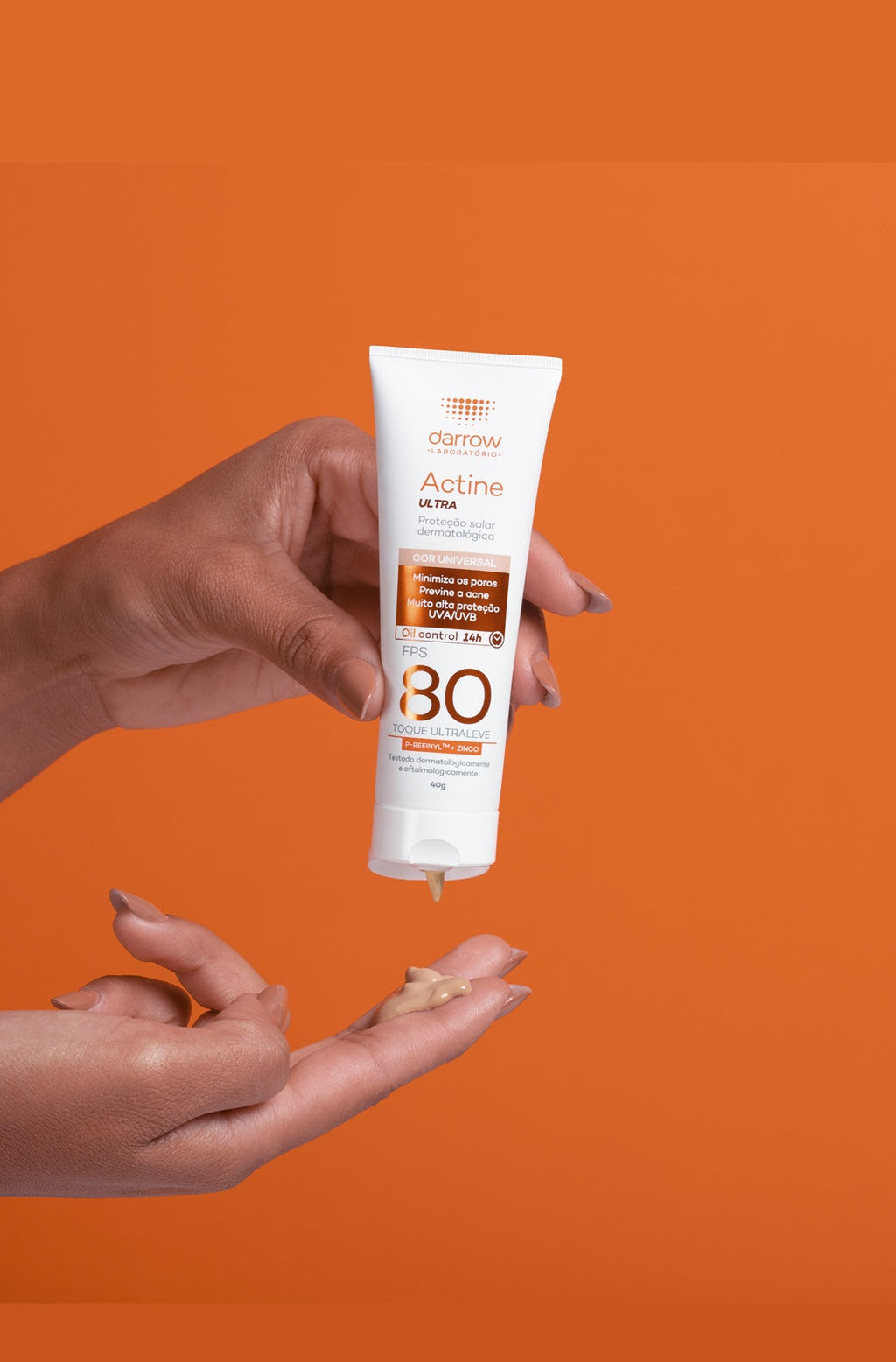 Darrow Actine Ultra Protetor Solar FPS 80 com cor 40g, possui uma fórmula especialmente desenvolvida para o cuidado da pele oleosa a acneica, com textura ultra-fluida de absorção imediata e toque ultraleve. Conheça os benefícios:
